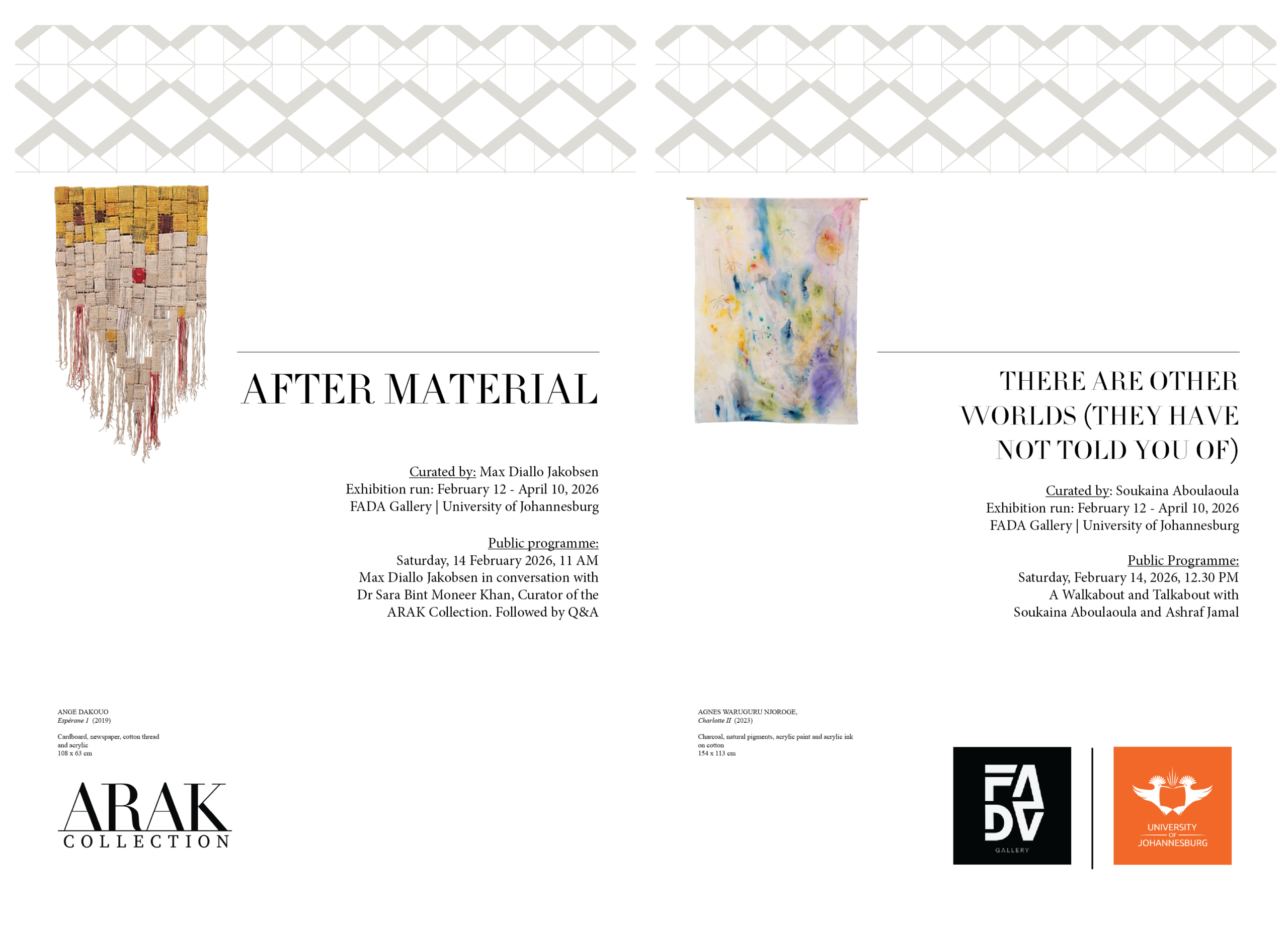 The Faculty of Art, Design and Architecture (FADA) Gallery at the University of Johannesburg, in partnership with ARAK Collection, is pleased to present two new exhibitions developed as part of ARAK Collection’s Curatorial Fellowship, 2025 – 2026. The …